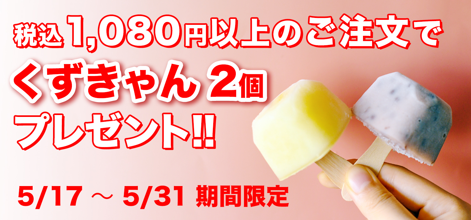 もれなく「くずきゃん 2個セット」をプレゼント!!